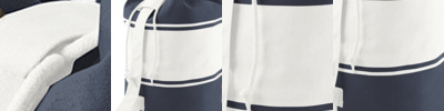 Polyester mesh lining. Hard wearing matt fabric. Contrast striped ribbed inner collar and cuffs. Full length zip. Right chest zip pocket. Two front zip pockets. Polyamide taslon ottoman outer. 630g